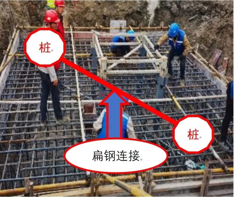利用建筑物筏板钢筋做接地体时,须用筏板或底板内2根以上主钢筋(直径不小于Φ16)焊接贯通,相交处彼此焊接,并与所有经过的混凝土桩内两根主筋可靠焊接,在建筑变形缝处做弓形连接。