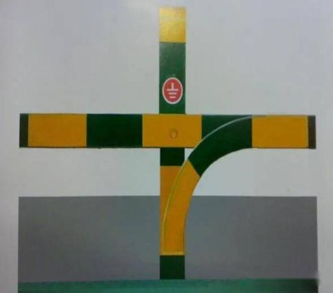 在明敷接地线表面,沿长度方向,涂以宽度15~100㎜的黄色和绿色相间的油漆条纹。
