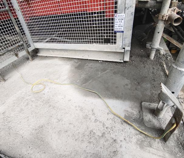 接地线连接人货梯金属结构、电机外壳、配电箱等,与接地极可靠连接。
